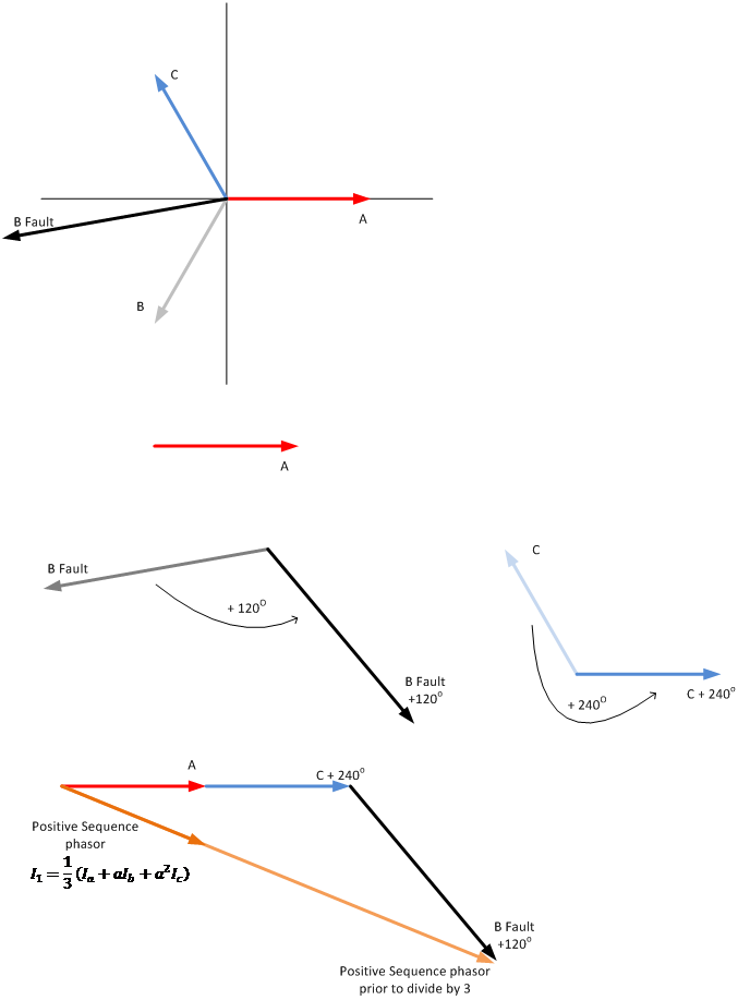 - Sequence components can be calculated and illustrated through the use of phasor diagrams for a phase to neutral fault.
